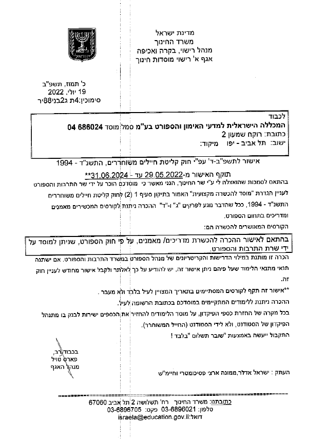 - לבדיקת זכאות למימון שכר לימוד ממשרד הקליטה או ממשרד העבודה יש לפנות לאיש הקשר שלכם במשרדים אלו.